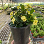 • Description: Crown of Thorns is a deciduous, herbaceous, perennial shrub with bright green leaves and greenish flowers. The flowers are enclosed within long-lasting and bright bracts of red or yellow. The plant is loose in form, spiny and irregularly shaped, with thick, black spines and its historic presence in the Middle East led to the belief by some that the stems of this plant had been used in Christ's crown of thorns, hence the common name. In its country of origin (Madagascar) the plant will grow to 5 or 6 feet tall; however, in the United States, it typically grows to 3 feet, or 2 feet when grown as a houseplant.