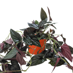 • Description: Syngonium erythrophyllum 'Red Arrow' is an evergreen climber from the aroid family, Araceae. It's commonly grown as a houseplant for its attractive foliage. Keep it moist in the growing period but allow to dry out a little in between watering during the winter. Keep in medium to bright light, out of direct sunlight.  It produces vibrant light green, arrow-shaped young leaves with vibrant purple undersides. The leaves develop into a completely different structure with age. Mature leaves are divided into 3 lobes or 5–9 distinct leaflets and these do not closely resemble the young arrow-shaped leaves.
